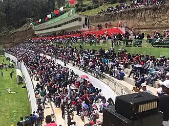 After Mushuc Runa's promotion from Segunda Categoría in 2011, the club started to prepare the grounds for a new stadium in March 2012.[1] The construction was completed in late 2018,[2] and had its inauguration on 17 November of that year, as Mushuc Runa beat Orense 3–0 in the Serie B.[3][4]