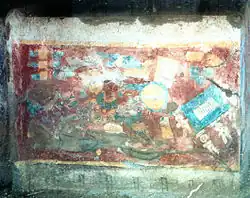 Another interesting archeological site is called Tizatlán. This site does not contain pyramids; instead the buildings here are made of adobe brick, a very unusual construction material for this place and time. The site contains two stucco-covered altars with murals that follow the Borgia Group codex style with images of gods and important human figures, including gods such as Tezcatlipoca, Tlaloc and Mayahuel and were the scene of human sacrifices.[9][20]