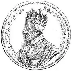 In July 1584 king Henri III's brother Alençon died, leaving the king's distant Protestant cousin the king of Navarre as heir to the throne. This was seized upon as unacceptable by a certain segment of the Catholic nobility, led by the duke of Guise who reformed the Catholic ligue (league) to oppose his succession. The Catholic ligue settled on Navarre's Catholic uncle Cardinal Bourbon as their candidate to succeed Henri.[1] Bourbon was an aged man, and has been considered a 'stopgap' candidate for the throne.[2] In 1589 Henri was assassinated and the ligue declared Bourbon the king as Charles X (though he was in the captivity of Navarre, who now styled himself Henri IV).[3] Bourbon would however die before being released from captivity on 9 May 1590, leaving the ligue without a king to oppose Henri.[4]