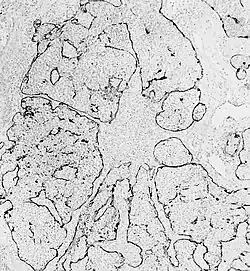 - ^ Kadish S, Goodman M, Wang CC (March 1976). "Olfactory neuroblastoma. A clinical analysis of 17 cases". Cancer. 37 (3): 1571–1576. doi:10.1002/1097-0142(197603)37:3<1571::aid-cncr2820370347>3.0.co;2-l. PMID 1260676.