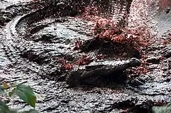 Studies have shown that, unlike freshwater crocodiles (which can easily die from eating poisonous toads), saltwater crocodiles are partially resistant to cane toad toxins and can consume them, but in only small quantities and not enough to provide effective natural control for this virulent introduced pest.[120] Large crocodiles, even the oldest males, do not ignore small species, especially those without developed escape abilities, when the opportunity arises. On the other hand, sub-adult saltwater crocodiles weighing only 8.7 to 15.8 kg (19 to 35 lb) (and measuring 1.36 to 1.79 m (4 ft 6 in to 5 ft 10 in)) have been recorded killing and eating goats weighing 50 to 92% of their own body mass in Orissa, India, and so are capable of attacking large prey from an early age.[118][121][122] It was found that the diet of specimens in juvenile to subadult range, since they feed on any animals up to their own size practically no matter how small, was more diverse than that of adults, which often ignored all prey below a certain size limit.[123]