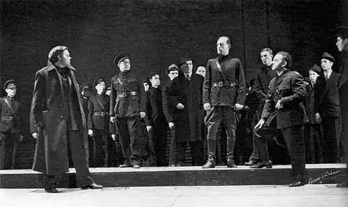 There is no evidence that the historical Caesar spoke these words.[4][5] Though the historical Caesar's last words are not known with certainty, the Roman historian Suetonius, a century and a half after the incident, claims Caesar said nothing as he died, but that others reported that Caesar's last words were the Greek phrase Kaì sý, téknon (Καὶ σύ, τέκνον),[6][7] which means "You too, child" or "You too, young man"[8] to Brutus.