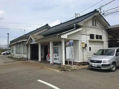 Etchū-Daimon Station (越中大門駅, Etchū-Daimon-eki) is a railway station on the Ainokaze Toyama Railway Line in the city of Imizu, Toyama Prefecture, Japan, operated by the third-sector railway operator Ainokaze Toyama Railway. It is also a freight terminal for the Japan Freight Railway Company.