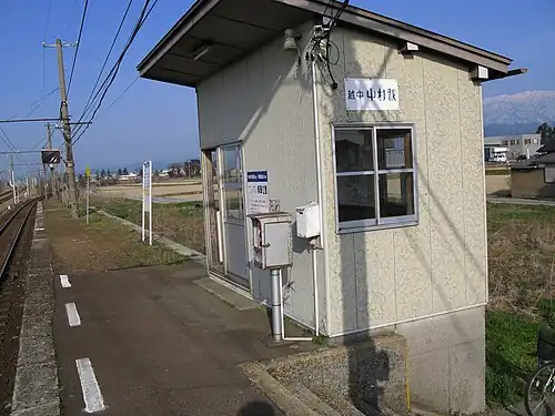 Etchū-Nakamura Station (越中中村駅, Etchū-Nakamura-eki) is a railway station in the city of Namerikawa, Toyama, Japan, operated by the private railway operator Toyama Chihō Railway.