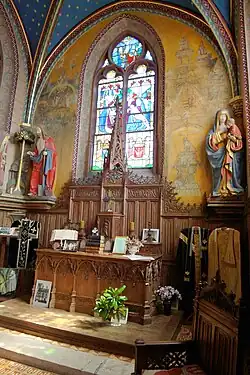 As integral part of the main building, the chapel, dedicated to Mary Magdalene, include stained glass windows, wall paintings and statues which characterised the first Norman Renaissance.