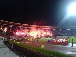 According to a 2008 survey, Red Star is the most popular club in Serbia with 48% of the population supporting them. The second most popular is Partizan.[3] They also have many supporters in the Republika Srpska, Montenegro and among the Serbian diaspora.