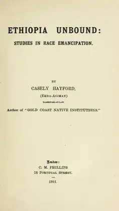 Ethiopia Unbound: Studies in Race Emancipation is a 1911 book by J. E. Casely Hayford that is one of the first novels in English by an African writer and has been cited as the earliest pan-African fiction.[1][2] It was first published by C. M. Philips in London.[3] It has been described as "one of the most important contributions to the literature on African nationalism", which made a plea for a unified African nation.[4]