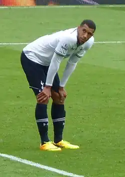 In July 2013, Toulouse accepted a reported £9.5 million bid from Premier League side Cardiff City.[16] However, personal terms were not agreed and the deal was not finalised. On 15 August 2013, he completed an €11m (£9.3m) transfer to Tottenham Hotspur.[17][18] The day before the announcement, Tottenham and France's first choice goalkeeper, Hugo Lloris told French newspaper L'Équipe that joining Tottenham would be a big step in Capoue's career, and stated his delight to see him join Tottenham.[19] Capoue made his debut for Spurs on 18 August, replacing Mousa Dembélé in a 1–0 win away to Crystal Palace at Selhurst Park.[20] He scored his first goal for the club on 29 January, in a 5–1 home loss to Manchester City, after coming on at half time for Dembélé.[21]