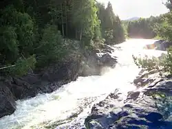 View of the Etna river, slightly north of the rock carvings at Møllerstufossen | |