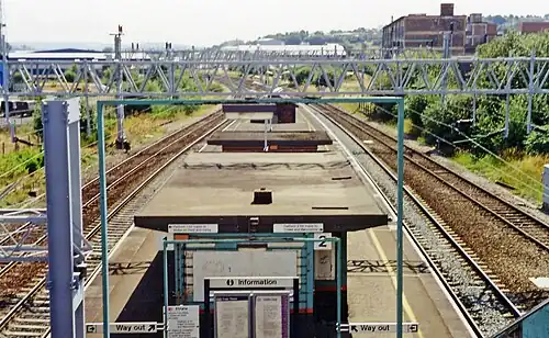 The platform signage and platform objects were removed in June 2006 and by December 2008 the platform had been demolished to permit the straightening of the track and remove a 60 mph (97 km/h) speed restriction to allow trains to run at 85 mph (137 km/h) southbound and 90 mph (145 km/h) northbound.