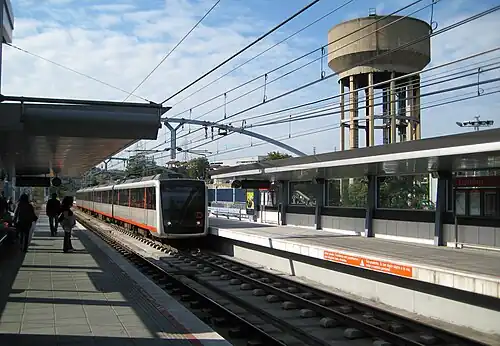 Etxebarri is a station on lines 1 and 2 of the Bilbao metro. It is the southern terminus of line 1. The station is located in the municipality of Etxebarri, part of the Bilbao metropolitan area. It was opened in 2005. The station is on Fuenlabrada street, next to a park and ride parking facility.[1]