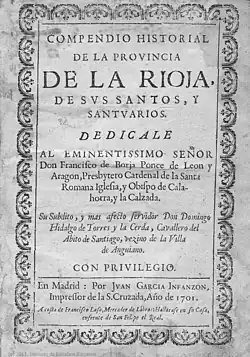 - ^ a b Anguiano, Mateo de (1704). Compendio historial de la provincia de La Rioja, de sus santos y milagrosos santuarios (in Spanish). Antonio Gonçalez de Reyes. p. 170. Retrieved August 19, 2019.