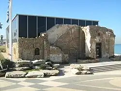 The other, main building of the Etzel Museum stands on King George Street and tells the story of the formation of Etzel, while Etzel House, or Beit Gidi, is illustrating the organisation's underground activities.[1] The original stone house was built in 1900, toward the end of the Ottoman period, by a Jew.[4] It is one of the very few leftovers from the predominantly Arab district of Manshiya (Arabic name), sometimes mentioned in Israel as Menashiya, that was in part destroyed during the 1948 battles.[1] The ruins of the house are now built over by a glass structure, the resulting building being surrounded on three sides by the Charles Clore Park, with its fourth side facing the seafront.[1]