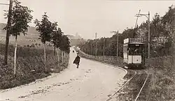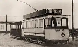 At the start of operations, the fleet included four tramcars, four trailers, and one freight wagon for mail and parcels. The fleet was gradually expanded before World War I, reaching six tramcars by 1903 and seven by 1910, with the number of trailers increasing to five in 1904 and six in 1912.[22] This represented the network's peak rolling stock.[23] Following the war and the subsequent decline in traffic, the fleet was reduced, with the withdrawal of at least three trailers and the freight wagon.[22]