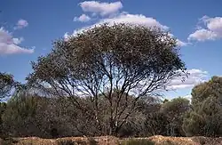 Burracoppin mallee is found on sandplains in scattered areas of the central and eastern wheatbelt region between Ballidu, Bullfinch, Kondinin and Marvel Loch.[3][5]