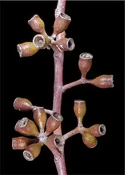 - Eucalyptus celastroides Turcz. subsp. celastroides[10] has greyish or bluish green leaves and glaucous branchlets, sometimes buds and fruit that are also glaucous;[4][9]