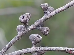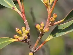 Eucalyptus codonocarpa, commonly known as the bell-fruited mallee ash[3] or New England mallee ash,[4] is a flowering plant that is endemic to eastern Australia. It is a slender mallee with smooth, grey, yellow or brownish bark, lance-shaped to curved adult leaves, flowers buds in groups of three or seven, white flowers and bell-shaped fruit. It grows on the Northern Tablelands in New South Wales and nearby areas in Queensland.