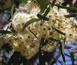 Eucalyptus cylindriflora, commonly known as the white mallee[2] or goldfields white mallee,[3]: A2 is a species of mallee that is endemic to the southwest of Western Australia. It has smooth bark, glossy green, linear adult leaves, flower buds in groups of seven, creamy white flowers and cylindrical to cup-shaped fruit.