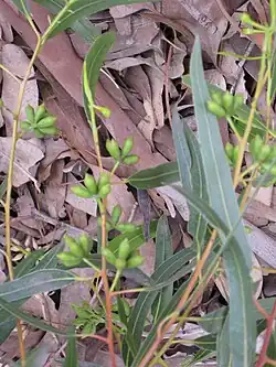 This eucalypt is sold commercially in seed form or as tube stock, it is salt, drought[8] and frost tolerant and is grown as a shade tree or a street tree in arid areas.[9]
