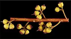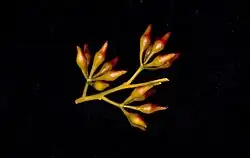 Eucalyptus formanii, commonly known as Die Hardy mallee,[3] Forman's mallee or feather gum,[4] is a species of tree or mallee that is endemic to Western Australia. It has rough bark over most, or all of its trunk, smooth bark above, linear adult leaves, flower buds in groups of seven or nine, creamy white flowers and cup-shaped to hemispherical fruit.