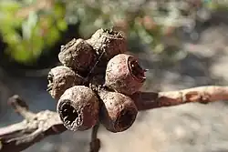 - ^ a b c Nicolle, Dean; French, Malcolm E. (2012). "A revision of Eucalyptus ser. Falcatae (Myrtaceae) from south-western Australia, including the description of new taxa and comments on the probable hybrid origin of E. balanites, E. balanopelex and E. phylacis" (PDF). Nuytsia. 22 (6): 433–434. Retrieved 14 November 2019.