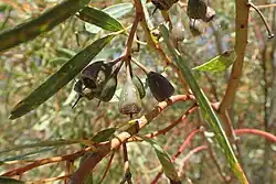 Eucalyptus sargentii, commonly known as Salt River gum,[2] is a species of mallet, mallee or small tree that is endemic to Western Australia.[3] It has rough bark on part or all of the trunk, smooth bark above, linear to narrow lance-shaped leaves, flower buds in groups of seven, whitish to creamy yellow flowers and conical fruit.