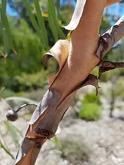 Although the tree is not commonly cultivated,[11] it is commercially available in seed form or as seedlings. The drought tolerant plant[5] grows in full sun and attracts birds such as honeyeaters to the garden.[12]