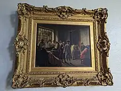 The principal works of Fichel are genre paintings. These include "The End of Dinner", "A Festival in the Year 1776", "The Capture of a Spy", "The Wandering Singers", "A Morning Call", "The Arrival at the Inn", "The Council of War", "Tavern scene" and others. He also did history paintings which have the freedom and imagination of pure genre: "The Night of August 24, 1572" and "Founding of the French Academy." Society portraits include that of Mrs. Laure Caillot (1832-1918) painted in 1854, spouse of Jacques Caillot (1823-1905) who designed Art Nouveau jewellery and hair combs and of Mrs. "Palmyre Bordier" painted in 1870, spouse of painter and inspector general of fine arts Alfred Arago, son of François Arago. Many of Fichel's paintings are in galleries and private collections. "At the Tailor (1881)" is located in San Francisco. Two of his paintings, "A Violin Player," executed in 1871, and "Awaiting an Audience," painted in 1881, are in the New York Metropolitan Museum of Art.
