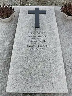 Brazier's customers included well known figures including Marlene Dietrich and Charles de Gaulle.[53] For the influential food writer Curnonsky, "France's Prince of Gastronomy",[59] Brazier was the greatest cuisinier in the world.[49] Smith writes, "It is not going too far to say that her cuisine was the start of modern French gastronomy".[48] In the same book, Bocuse calls her "one of the pillars of global gastronomy".[60] Her death was marked by obituaries not only in the French press but in foreign papers; The New York Times and papers across the US carried articles, tribute was paid in the British press,[52][61] and a Swiss paper observed that the gourmets of Lyon were in mourning.[62]