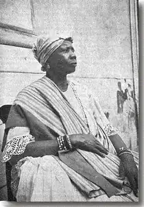 Eugênia Anna Santos (Mãe Aninha, Oba Biyi; Salvador, Bahia, 13 July 1869 - Salvador, 3 January 1938) was a Brazilian Iyalorixá. She founded the candomblé Ilê Axé Opó Afonjá in Salvador, now considered a National Historic Landmark, and in Rio de Janeiro.[1]