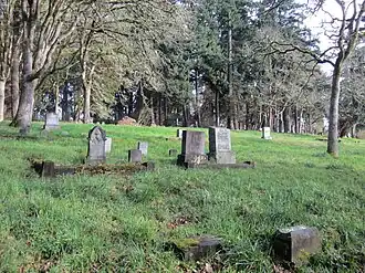 Eugene Masonic Cemetery, is a historic cemetery in Eugene, Oregon, United States. It is the oldest[2] chartered cemetery in Eugene, and is one of the oldest privately owned and continuously operating historic entities in Lane County. It was incorporated as a burial site in 1859,[3] the same year Oregon became a state. As was the custom at the time, prominent citizens of Eugene City asked a local fraternal organization—in this case, the Freemasons—to establish a city "bury ground" open to all. The Masons purchased ten acres on a knoll about two miles from the town center and laid out the cemetery with its main entrance at what is now the intersection of University Street and 25th Avenue.