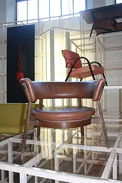 As a student, he started experimenting with the use of plywood. He took part in an exhibition at Fede Cheti[56] with an all-plywood chair with three legs.[57][58]