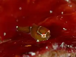 Eumicrotremus awae is a species of lumpfish endemic to the Pacific coast of Honshu, Japan, where it may be found from Chiba to Mie. It is a very small fish, reaching a maximum of 2 cm (0.79 in) SL, and it occurs near shore at depths of less than 20 m (66 ft).[2] This species is variable in color, being typically seen as either vibrant green or red. It is known to feed on extremely small crabs, and was previously known as Lethotremus awae until it was reclassified in 2017 following a taxonomic review and the descriptions of two similar "dwarf" species in Eumicrotremus.[3]
