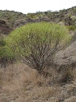 - Euphorbia lamarckii var. broussonetii (Willd. ex Link) Molero & Rovira (syns E. broussonetii, E. dendroides var. broussonetii, E. obtusifolia Poir. var. wildpretii) – found everywhere else, including north Tenerife