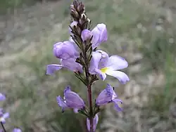 Euphrasia collina is a perennial herb or subshrub in the genus Euphrasia.[2] Plants grow between 5 and 60 cm high and have leaves with 1 to 6 teeth per side. The flowers may be white, blue, pink or purple, sometimes blotched with yellow on the lower petal.[2]