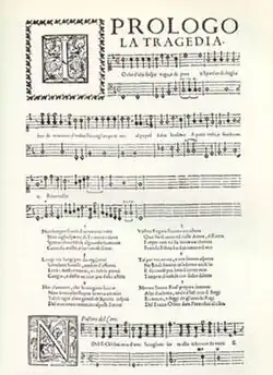 ![]() The Prologue, from the score published in Florence in 1600 | |