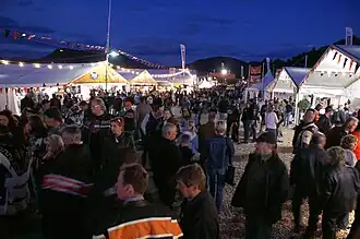 A focal point of the event is the Harley village, where campsites are located as well as the official Harley-Davidson dealership. The outlaw biker scene has its own place at the event.[2]