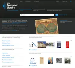 The European Library was an Internet service that allows access to the resources of 49 European national libraries[2] and an increasing number of research libraries. Searching is free and delivers metadata records as well as digital objects, mostly free of charge. The objects come from institutions located in countries which are members of the Council of Europe and range from catalogue records to full-text books, magazines, journals and audio recordings. Over 200 million records are searchable, including 24 million pages of full-text content and more than 7 million digital objects. Thirty five different languages are represented among the searchable objects.