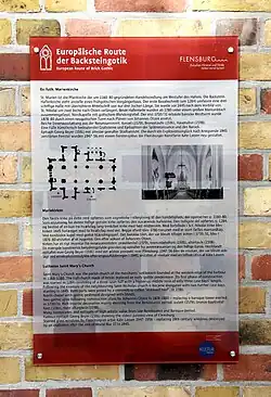 In the 1990s, Gottfried Kiesow, founder and long-standing chairman of the board of the Deutsche Stiftung Denkmalschutz ("German Foundation for Monument Protection"), launched the initiative Wege zur Backsteingotik ("Routes to Brick Gothic"). Its mission was to preserve the numerous Brick Gothic monuments in the territory of the former German Democratic Republic and to raise awareness of the unique cultural heritage of Brick Gothic. The initiative culminated in a dedicated exhibition on show in the Hanseatic cities of Greifswald, Rostock, Stralsund, Wismar and Lübeck in 2002. It can still be viewed today in St. Mary's Church in Wismar and in St. Mary's Church in Neubrandenburg.[3]
