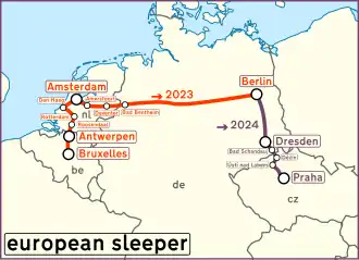 - ^ Vosman, Quintus (6 April 2021). "European Sleeper announces first international night train service". International Railway Journal. Retrieved 30 May 2023.