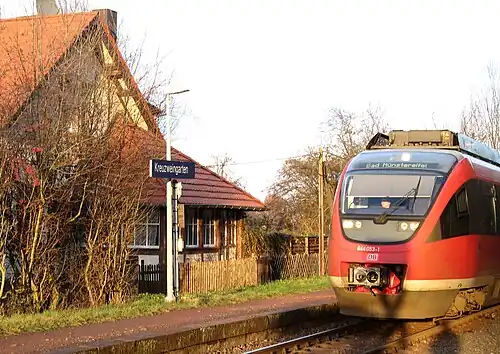 Euskirchen-Kreuzweingarten station is a railway station in the Kreuzweingarten district of the municipality of Euskirchen, located in the Euskirchen district in North Rhine-Westphalia, Germany.