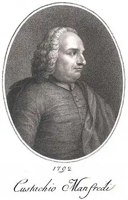 ![]() Eustachio Manfredi in an engraving dated 1792 by Francesco Rosaspina | |