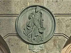 The bronze "Quadriga with Apollo and Euterpe" (the muse of lyric poetry) on the Teatro Politeama (1867–1874) in Palermo (Italy) by sculptor Mario Rutelli with riders on the sides fashioned by Benedetto Civiletti. -