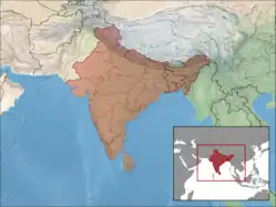 Frequently found in Bangladesh, India (except in the North-West), Maldives, Myanmar, & Nepal and Possibly in Bhutan.
