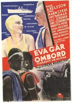 Eva Goes Aboard (Swedish: Eva går ombord) is a 1934 Swedish comedy film directed by Lorens Marmstedt and starring Einar Axelsson, Astrid Marmstedt and Emy Hagman.[1] It was shot in Stockholm and Gothenburg with footage used from a variety of locations the ship calls at, including Egypt, Monaco, India and Kenya.
