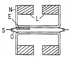 The original design was later modified, with assistance from Johnson Matthey, to place two pairs of magnets within an H-frame. The sample would be inserted between one pair of magnets while a small coil was positioned between the second pair. This entire assembly pivoted horizontally around a torsion strip. When a sample tube would be introduced between the magnets, the torsional force would be counterbalanced by the current passing through the coil, providing a reading on the display instead of using a potentiometer.[6]