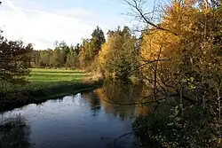 In the Alter Dorf or "Old Village" there is a millpond belonging to the manor, Rittergut I, which was created in 1638.[4] It had an original area of just under 0.75 hectares (1.9 acres), but was expanded in the 2nd half of the 20th century through the incorporation of other areas to 1.5 hectares (3.7 acres). Until the beginning of the 20th century it fed the mill owned by the manor; it was subsequently used in the 1970s and 1980s for fish farming.