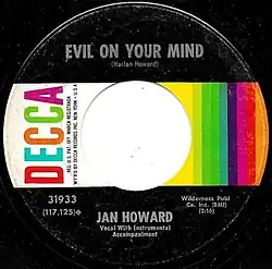 - ^ Howard, Jan (June 1966). "Jan Howard Sings Evil on Your Mind (Disc Information)". Decca Records. DL-74793 (Mono); DL-74793 (Stereo).