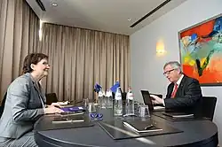 Since becoming a Member of the European Parliament following the 2019 European elections, Kopacz has been serving as one of its Vice-Presidents; in this capacity, she has been part of the Parliament's leadership under Presidents David Sassoli (2019–2022) and Roberta Metsola (since 2022).[15] Within the centre-right European People's Party Group (EPP), she is part of the leadership team around chairman Manfred Weber.[16] She later also joined the Special Committee on Beating Cancer (2020)[17] and the Special Committee on the COVID-19 pandemic (2022).[18][19]