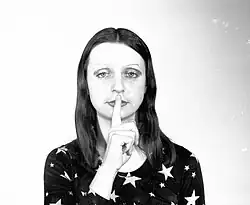 Since 1971, she has been creating "Poems By Ewa," conceptual poetry in the shape of poetic objects in which she often imprints her lips. Early conceptual-poetic pieces include Active Poetry, in which Partum used the wind to scatter cut-out letters in a variety of landscapes, using their random distribution to create poetry.[6] Her later poems compose of a strong feminist and social tone, although it is never stated in a clear or obvious way to the viewer. In one of Partum's performances during the period of martial law in 1982, she is naked and wearing red lipstick, and formed the word “Solidarnosc,” meaning solidarity, one by one with her lips on a piece of white paper.[7] This expresses one of the themes of her work that includes parodying the manners in which women try to conform to men's idealized expectations of them. In an exhibition on the subject of the Berlin Wall, she photographs herself naked in high-heels, and holding up a big letter “O” in her right hand and a “W” in her left, signifying Ost-West Schatten, or east–west shadows.[7]